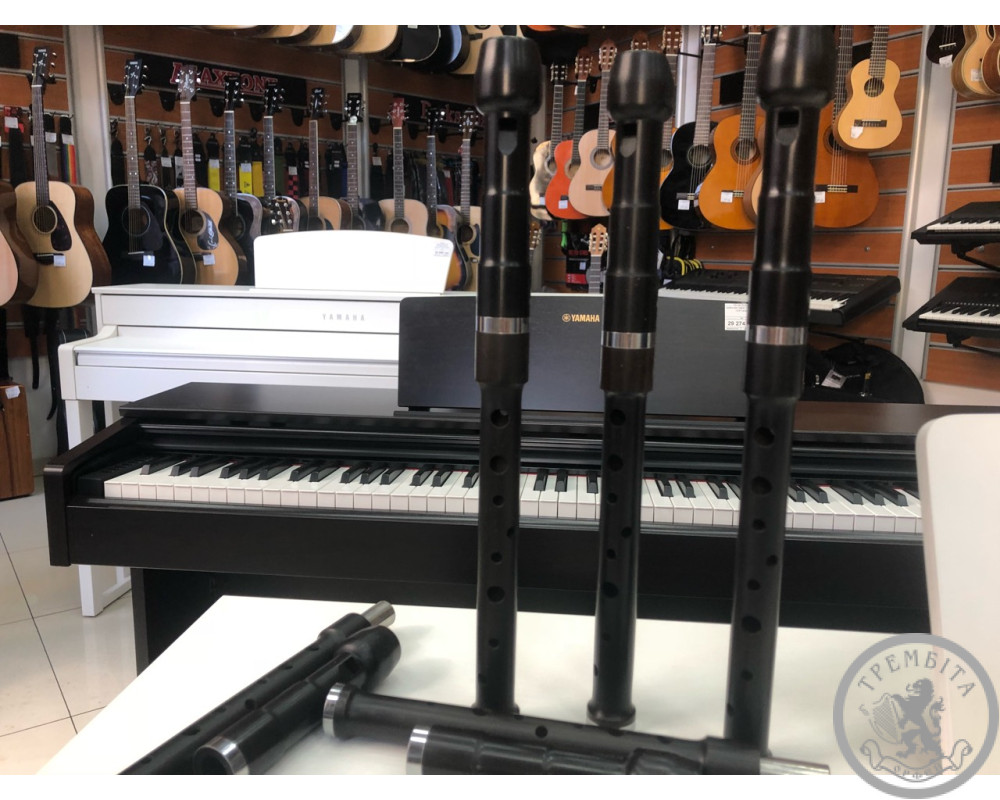 Матеріал - ебоніт. (дуже хороший, тримає гарно стрій, видає чіткі ноти, практично не зношується і є екологічно чистим)