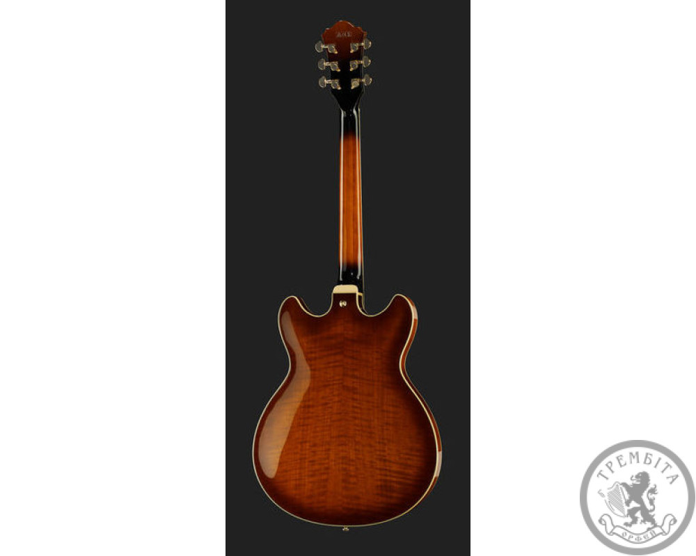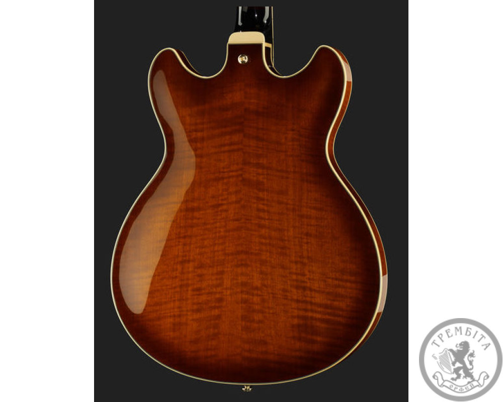 КОРОТКИЙ ОПИС - Напівакустична електрогітара, верхня дека - клен, обичайка і задня дека - клен, гриф - червоне дерево / палісандр, HH, фіксований бридж, колір санберст