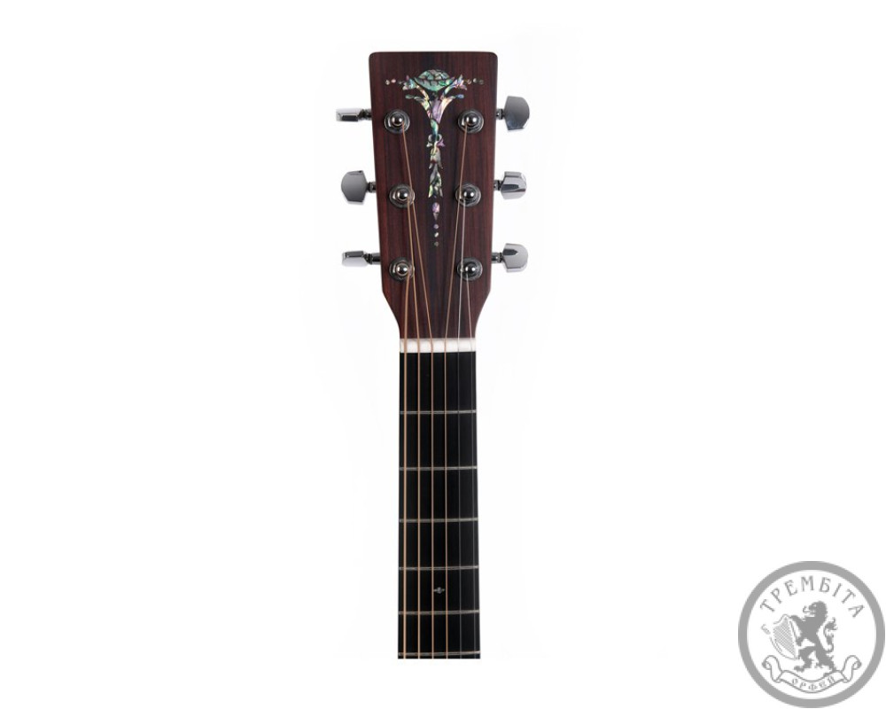 Верхня дека виготовляється з масиву ситхінської ялини, що є деревиною преміум класу. Ялина ідеально резонує на середніх частотах та придає м’який характер звуку. Задня дека та обичайка виготовляється з червоного дерева. Така деревина дозволяє гітарі звучати виразно й з рівною динамікою, а кожна нота ідеально прослуховується, особливо на високих ладах.