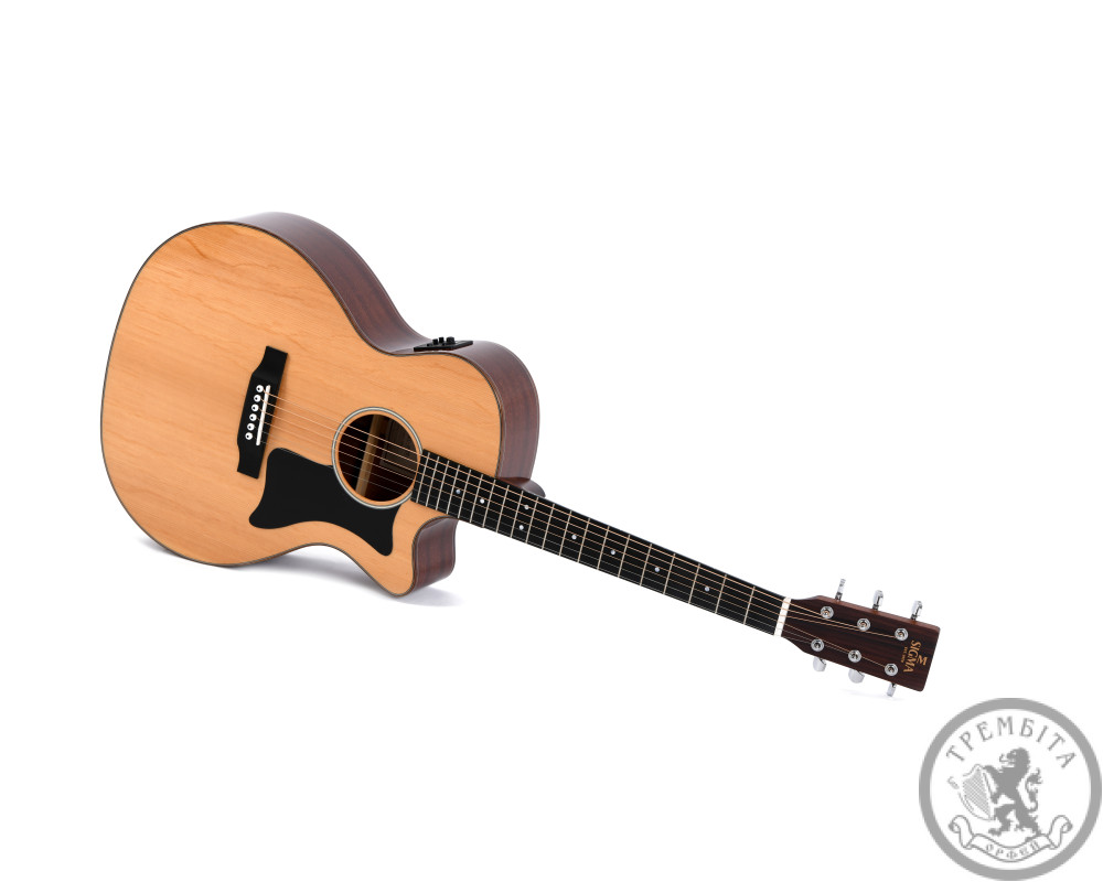 Гітара Sigma GMC-1E має привабливий зовнішній вигляд з глянцевим покриттям. Корпус гітари має строгу окантовку, а завдяки ультратонкого шару UV-лаку на гітарі чудово видно волокна деревини. Гриф вкритий матовим лаком.