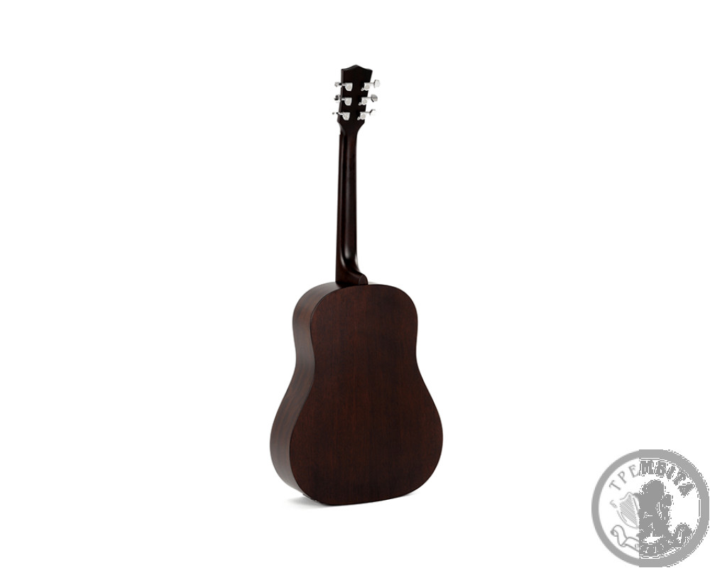 Верхня дека виготовляється з цільного дерева ситхінської ялини, яка придає звучанню м’якого характеру та чудово резонує на середніх частотах. Корпус Dreadnought з червоного дерева дозволяє гітарі звучати об’ємно, з вираженою нижньою серединою. Заокруглена форма в області грифу створює ідеальні умови для резонансу всередині корпуса. Поєднання форми корпуса й відбірної деревини створили чудовий інструмент для гри акомпанементу, який гармонійно звучить з вокальними партіями і розбірливо читається у міксі з іншими інструментами.