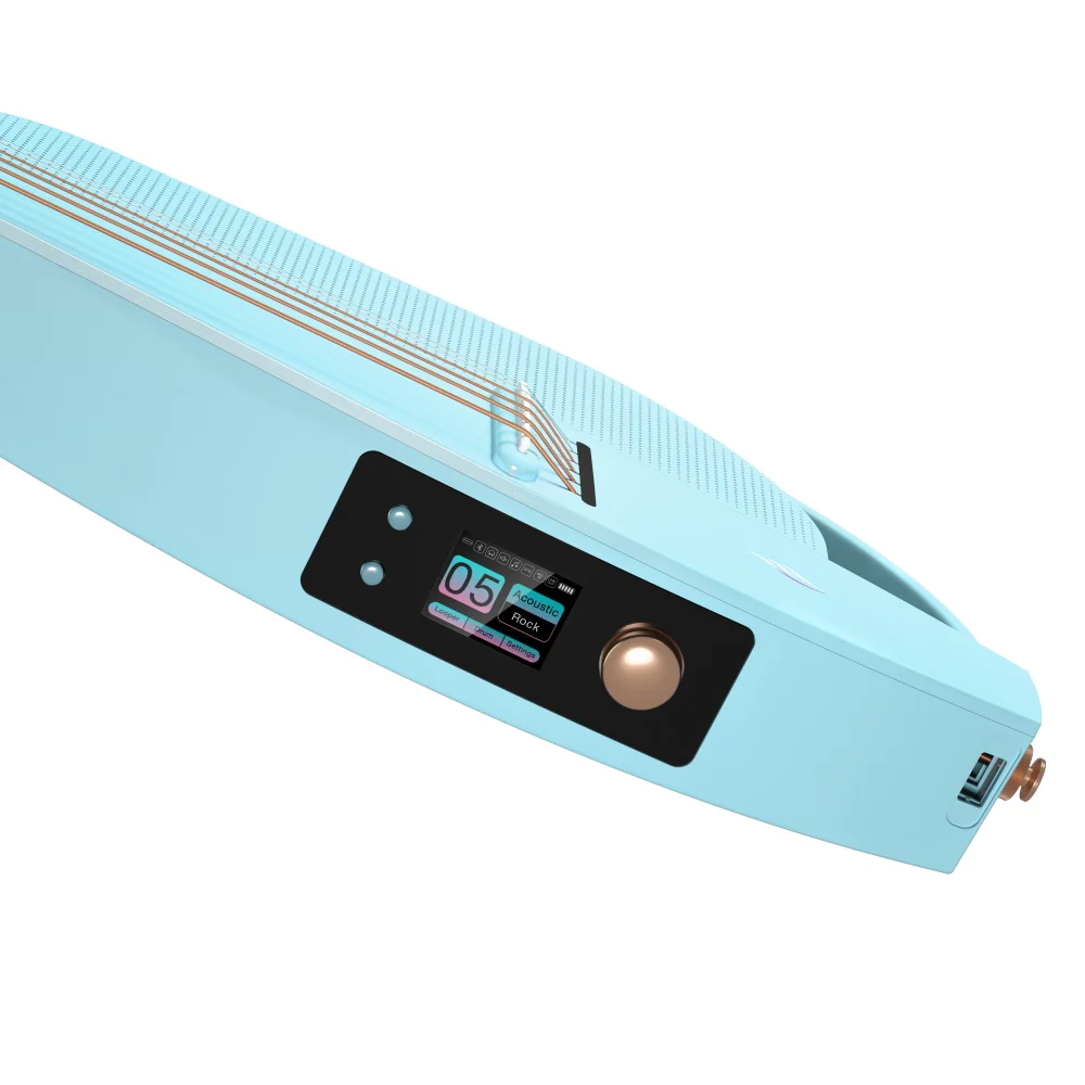 - Комплектація: Гітара, чохол, підставка для заряджання, бездротова педаль, ремінець, кабель для заряджання, ручний бездротовий мікрофон, навушники.