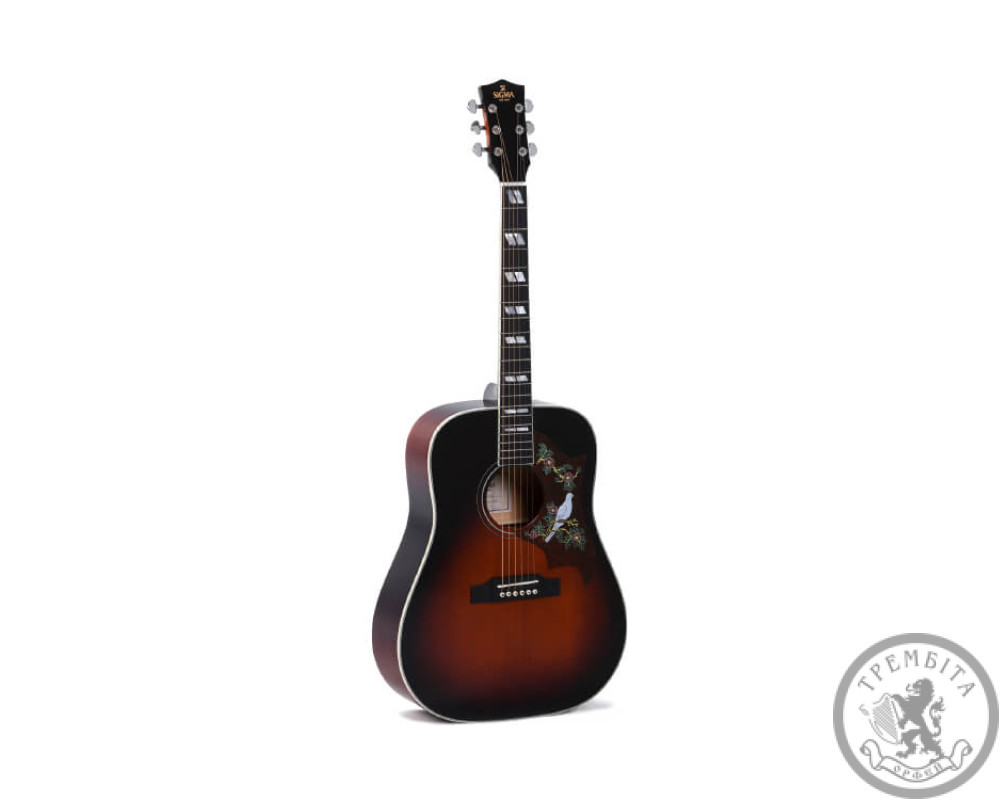 Електроакустична гітара Sigma DA-SG7+ вкрита глянцевим лаком, має класичну білу окантовку та привабливий "пікгард".