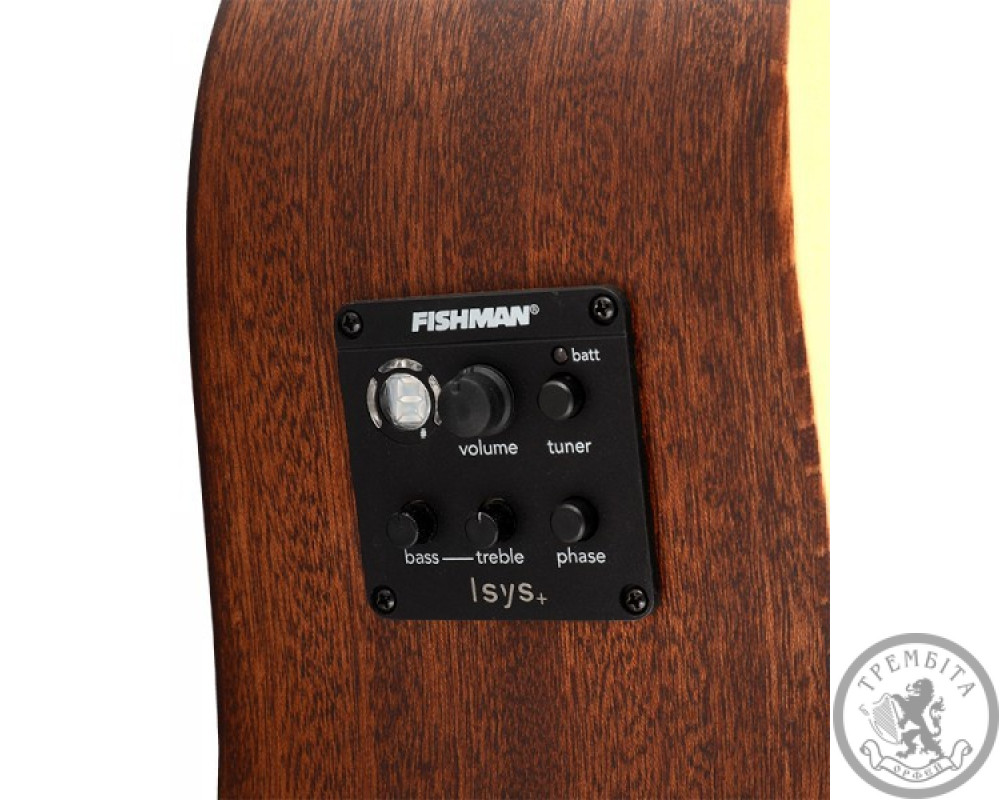 - Дана модель з корпусом "дредноут" з вирізом, оснащена звукоснимателем Fishman Isys+, з тюнером і 2-х смуговим еквалайзером.