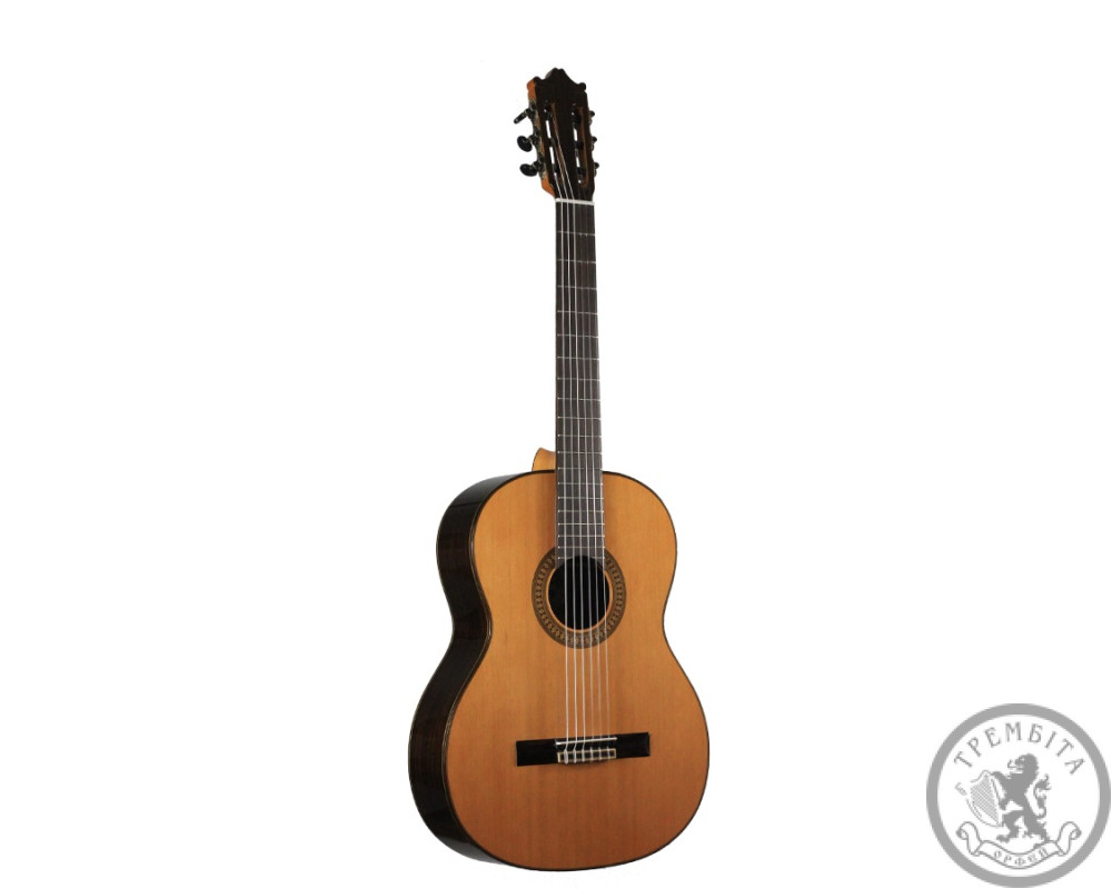 КОРОТКИЙ ОПИС: Класична гітара, верхня дека - цілісний кедр, задня дека і обичайка - палісандр, гриф - червоне дерево.