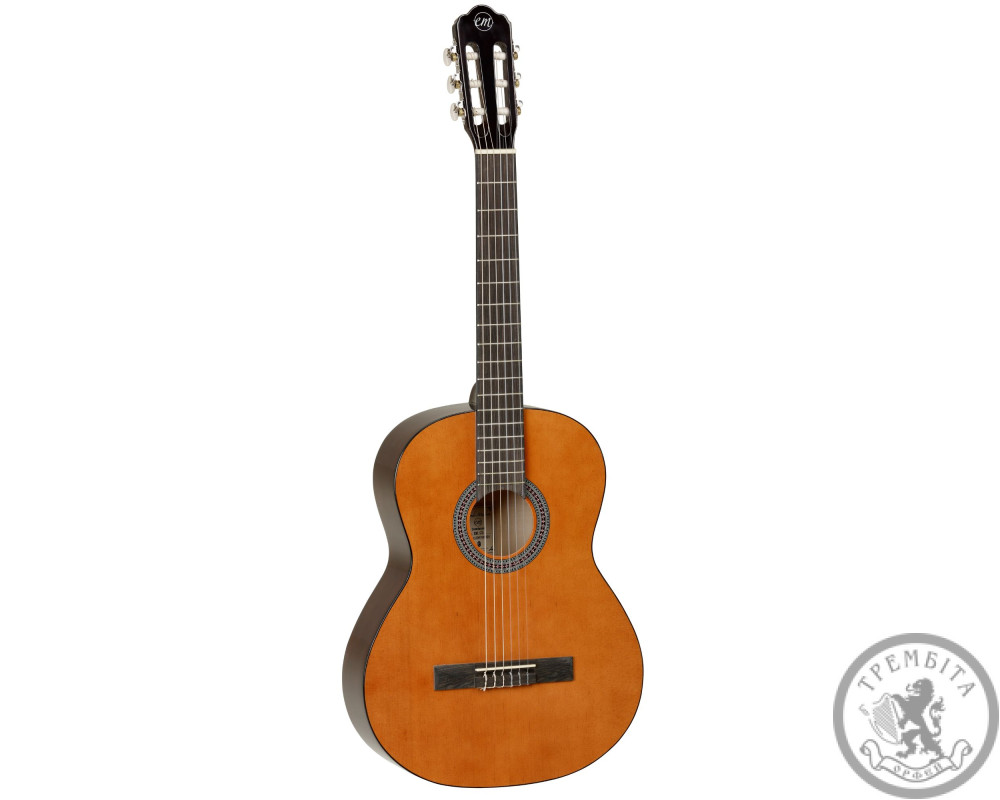 Корпус із липи дарує збалансоване звучання, приємне як для перших уроків, так і для більш усвідомленої гри. Гриф із махагону забезпечує надійність та комфорт у руці, а накладка Techwood додає природності відчуттів під пальцями. Класичні колки з білими кнопками підкреслюють традиційний дизайн, а нейлонові струни роблять гру м’якою та доступною, навіть для новачків.