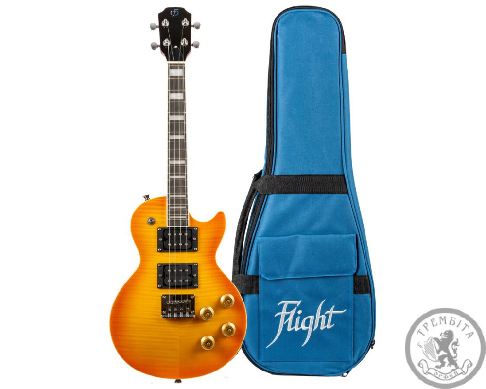 Завершує картину чорна лакована головка грифа з абалоновим логотипом Flight і кілками закритого типу. Голова грифа ідеально гармонує з класичним рок-іміджем укулеле.