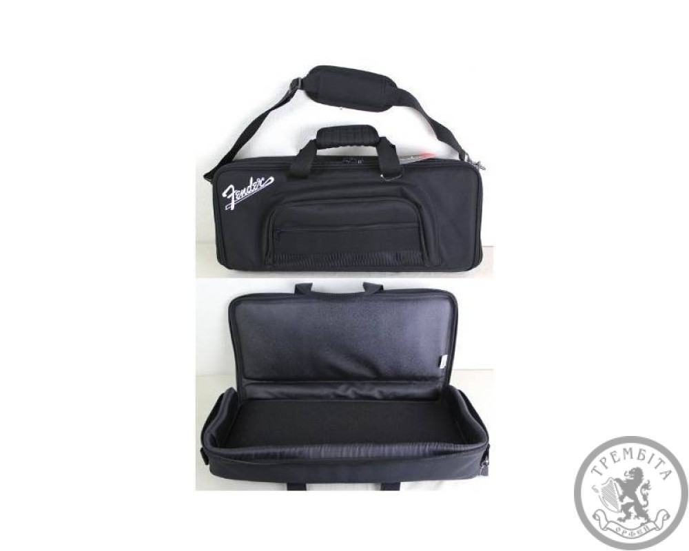 Основні особливості і переваги чохла FENDER PEDAL BOARD BAG: Професійний стиль і особливості обробки чохла від передового виробника аксесуарів для музичного обладнання, компанії Fender (США). Загальні габаритні розміри чохла складають 500 мм х 200 мм х 80 мм, що дає можливість комфортного розміщення гітарних педалей, педалборда або процесора ефектів. Якісне водовідштовхувальне покриття для транспортування ефектів в будь-яку погоду без побоювання намочити або зіпсувати при падінні. Транспортування може здійснюватися за ручки на бічній поверхні чохла або за допомогою синтетичного ременя для носіння на плечі. Класичний стиль і строгий чорний колір з великим фірмовим логотипом Fender на зовнішній поверхні чохла. Для транспортування додаткових аксесуарів зовні передбачено кілька великих, непромокальних кишень на блискавці. Високоякісні компоненти внутрішньої і зовнішньої обробки. Товщина внутрішньої, м'якою обробки (поролон, піна, штучний войлок) становить 20 міліметрів. Утеплене внутрішнє покриття дає можливість транспортування педалей навіть в мінусові температурні показники. Чохол ідеально підходить для більшості гітарних і бас-гітарних педалей, процесорів ефектів і рекових пристроїв. Комплект поставки включать в себе один чохол, набір аксесуарів і коротку інструкцію експлуатації. Матеріал чохла: поліестер / нейлон (синтетичний матеріал), обробка внутрішньої частини: штучний войлок / нейлон (синтетика).