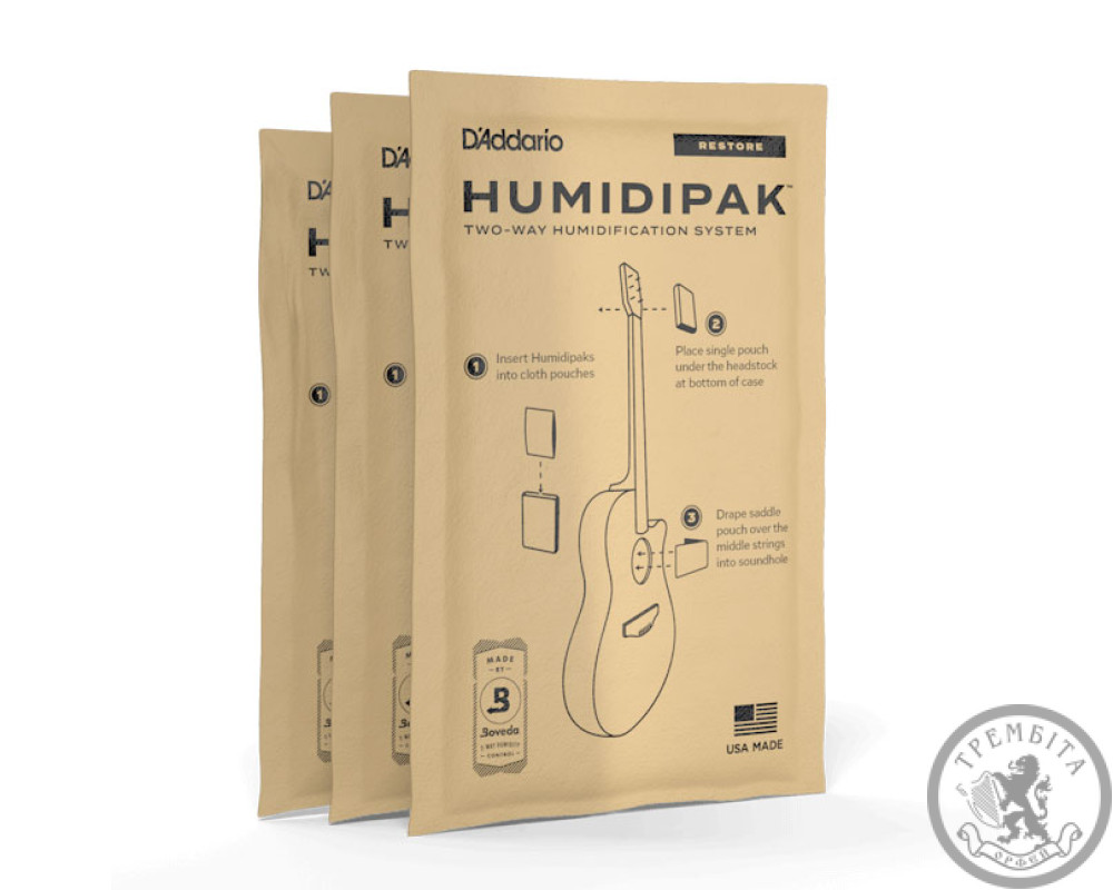 Змінні пакети Two-Way Humidification Conditioning Packets ідеально підходять для зволоження пересушеної акустичної гітари, що зберігається в жорсткому кейсі.