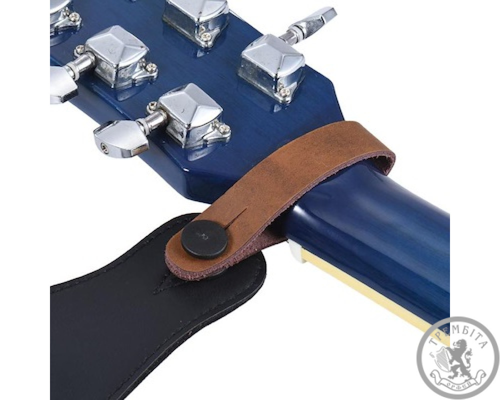 Забудьте про пошук шнурків і мотузочок! Приберіть дрель і шурупи подалі від вашої гітари! Цей невеликий шматочок шкіри - дуже корисний аксесуар для гітар без кріплення для ременя з боку грифа. Просто оберніть його навколо голови грифа, пропустивши під струнами - і ви можете використовувати свій улюблений ремінь, без необхідності в модифікації інструменту.