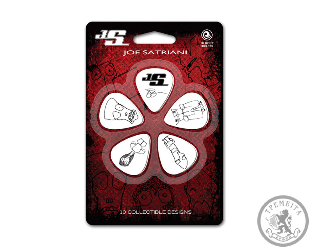 Іменні медіатори Joe Satriani виготовлені з високоякісного целулоїду. На кожен з них нанесено оригінальний малюнок на основі скетчів придуманих Джо Сатріані.