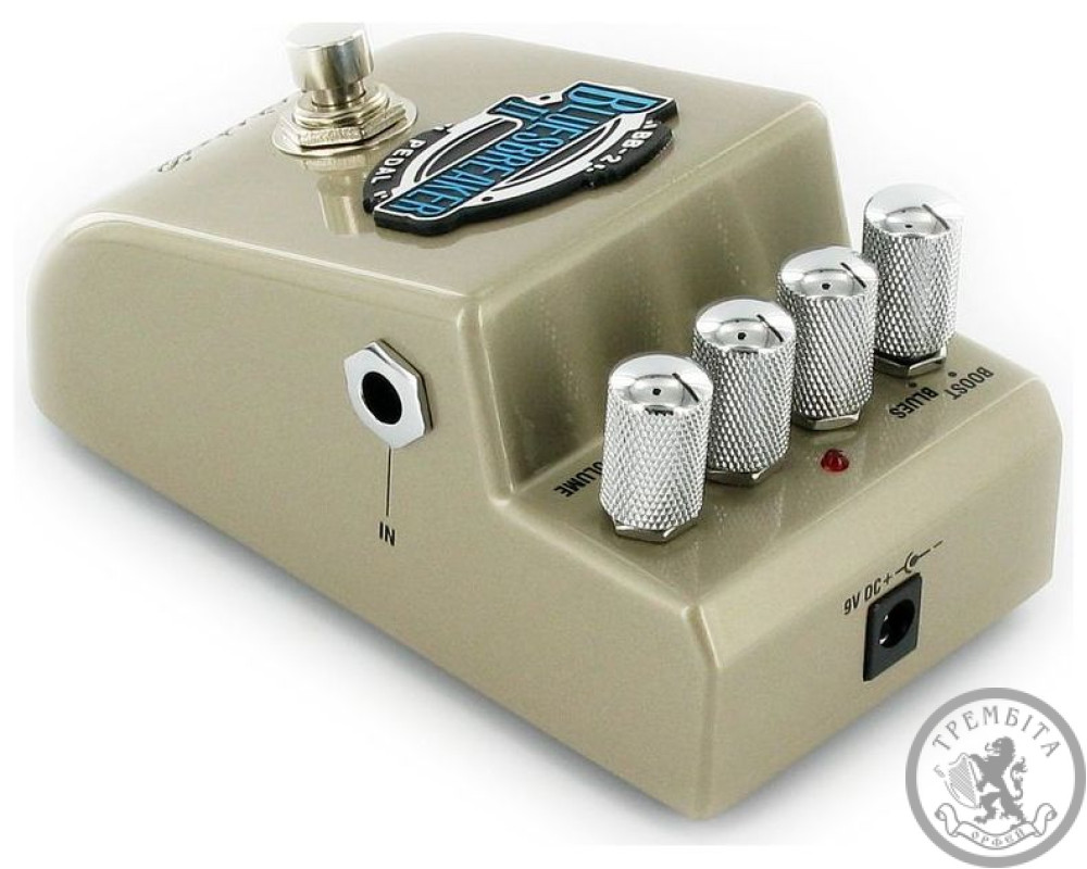 КОРОТКИЙ ОПИС: Гітарна педаль овердрайв, режими boost / blues, ругулятори Drive, Tone, Volume, пасивний байпасс, живлення 9V, габарити - 120х65х55 мм, вага - 510 г.