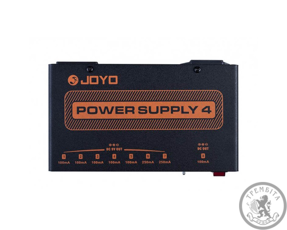 Joyo Power Suply 4 - професійний та універсальний блок живлення для гітарних ефектів. На ринку JP-04 з’явився у 2015 році, тому це живлення відповідає усім сучасним вимогам. Блок живлення обладнаний високоякісним трансформатором та загалом пропонує цілих 10А напруги.
