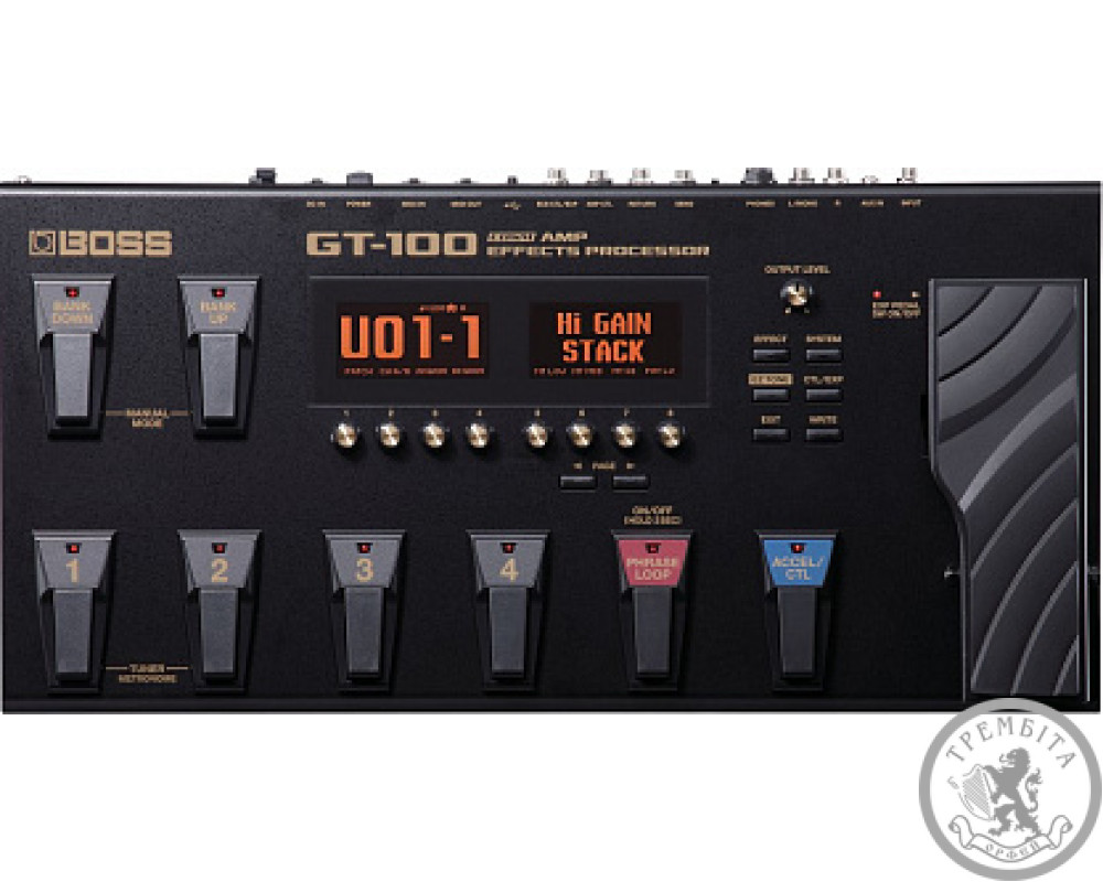Довгоочікуване продовження GT-10. Зустрічайте новий флагман процесорів від BOSS - GT-100, з моделюванням підсилювачів нового покоління, яке відтворює звучання класичних підсилювачів, а також нові тони COSM. Інтерфейс був поліпшений з унікальним подвійним ЖК-монітором, і функція EZ TONE була покращена з новими функціями AMP CUSTOMIZE і OD / DS CUSTOMIZE. GT-100 це потужний процесор, який простягається від класичного до футуристичного тонів, міцний корпус, дорожньо-гідне пристрій.
