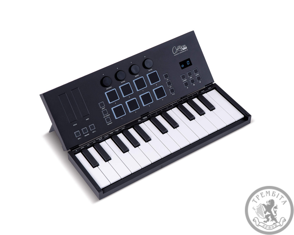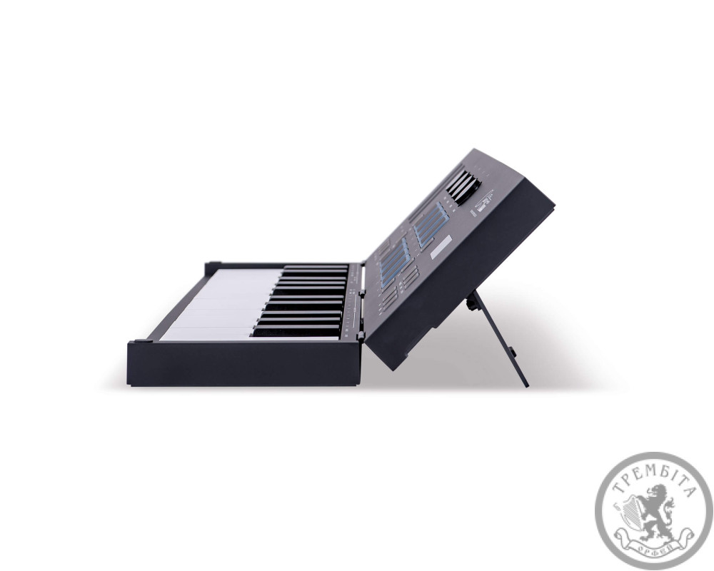 - Легка та компактна клавіатура, яка розкладається у повнорозмірний 49-клавішний MIDI-контролер