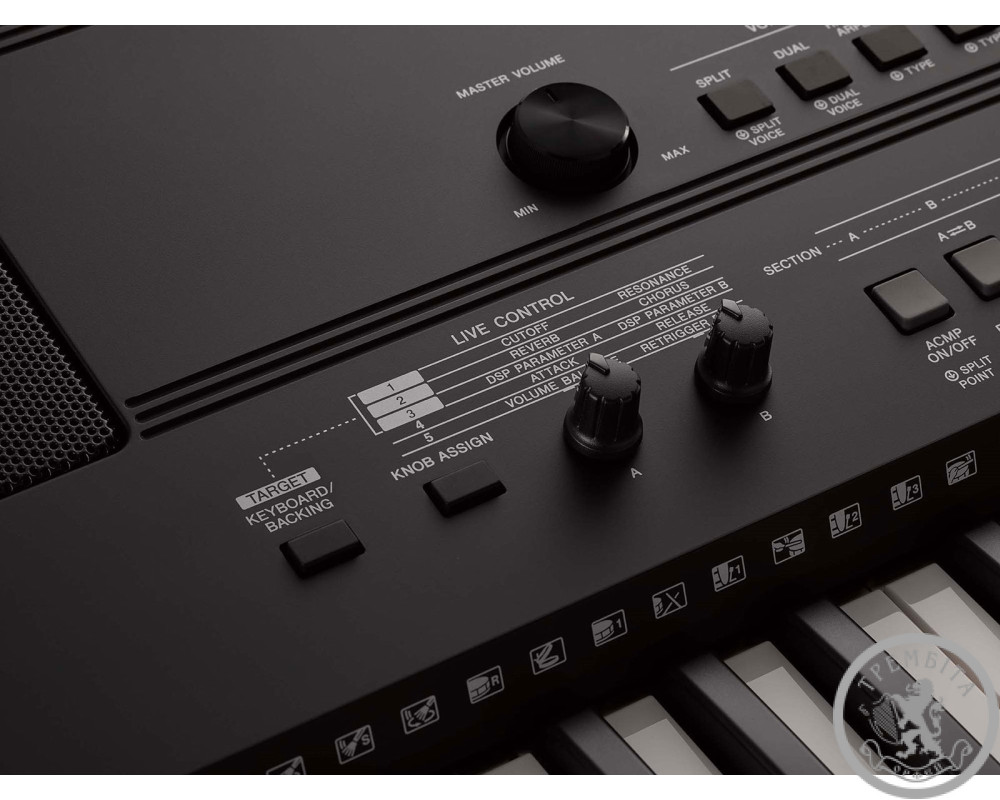 Ефекти | Відлуння (12 типів), хорус (5 типів), ultra wide stereo, harmony (26 типів), melody supressor, Master EQ (6 типів), 10 DSP ефектів (призначаються на енкодери) | |