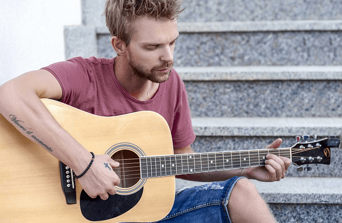 - Обучение на акустической гитаре происходит сложнее, кожа на пальцах становится толще после натертых мозолей.