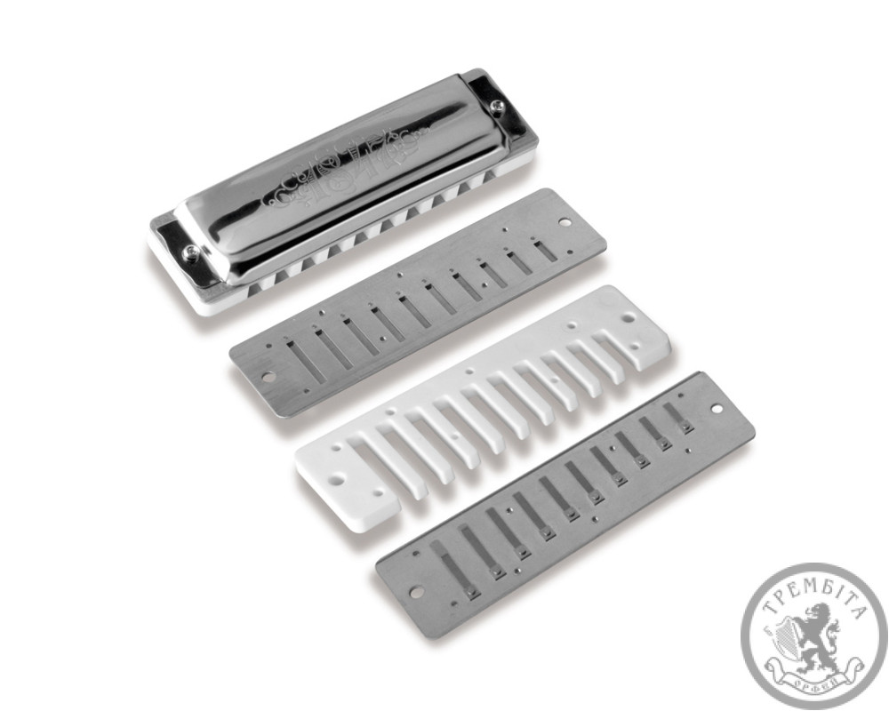 Діатонічна гармоніка типу Richter з язичками з нержавіючої сталі і полімерним корпусом