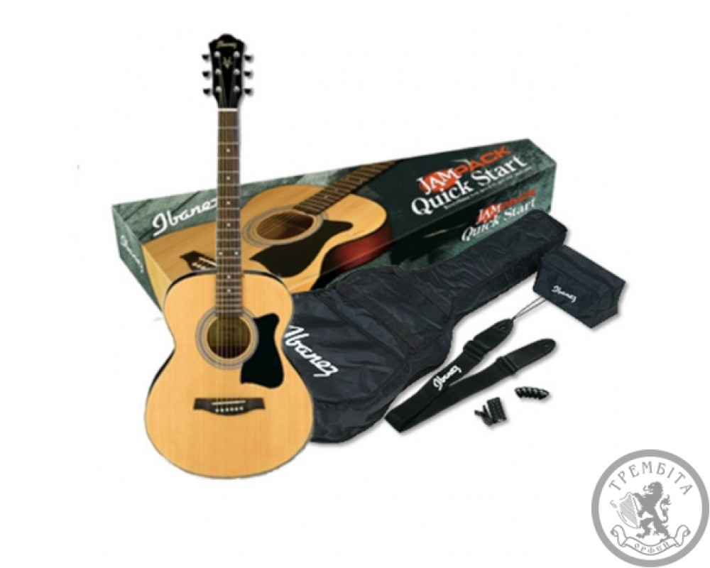 Набор для начинающего гитариста Ibanez VC50NJP с акустической гитарой VC50 в форме Grand Concert имеет все, что вам нужно для того, чтобы, вскрыв упаковку, вы смогли бы сразу же начать играть. В состав Ibanez VC50NJP входит гитарный чехол, тюнер, гитарный ремень, медиаторы и сумочка для аксессуаров.