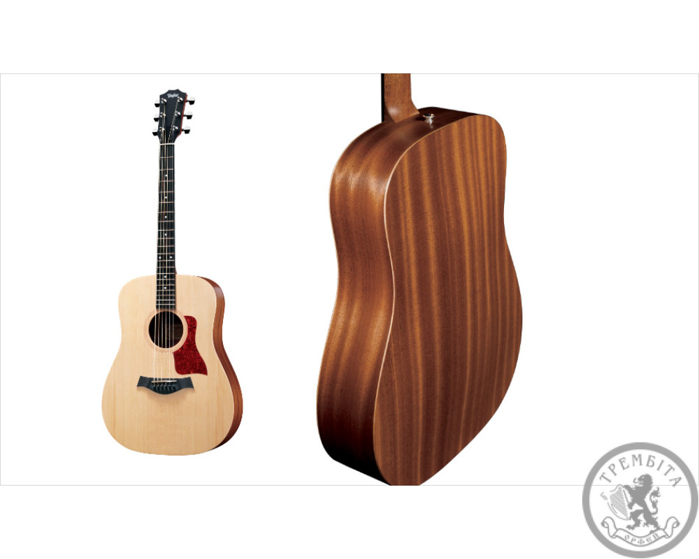 Це великий брат (або сестра) популярної моделі Baby з повноцінним дредноут звучанням. Інструмент оснащений корпусом з ламінованого сапеле з цільної верхньою декою з ситхинской їли і стане вам відмінним другом у виконанні музики та пісень. Гітара комплектується фірмовим чохлом Taylor.