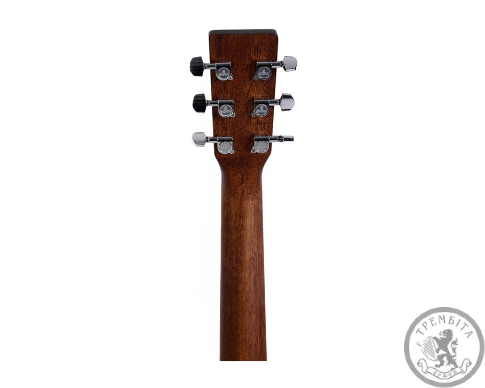 Гриф изготавливается из махогани, а накладка грифа из микарты, поэтому гитаре присущ теплый тембр с долгим сустейном. Поэтому, играя аккордами, Вы получаете невероятно широкий и объемный звук. Председатель грифа оборудована хромированной литой Колковый механикой с уменьшенными ручками. Колья надежно держат строй, а настройки гитары комфортно. Длина мензуры составляет 645 мм., А ширина грифа в области верхнего порожка 47,6 мм.
