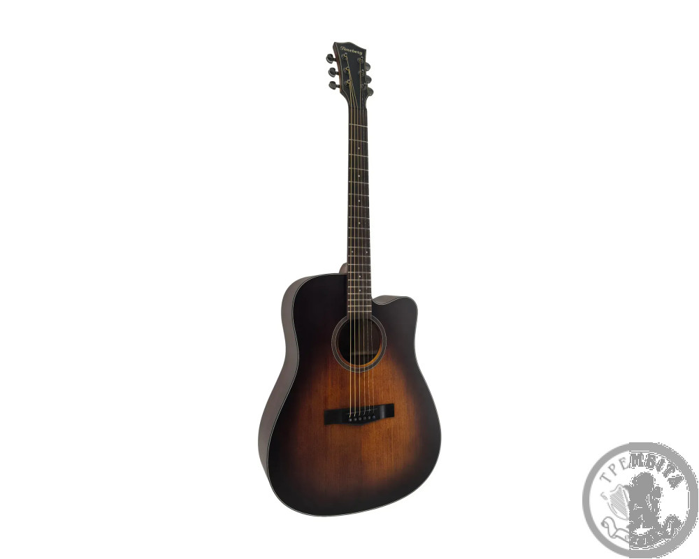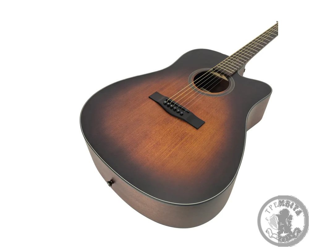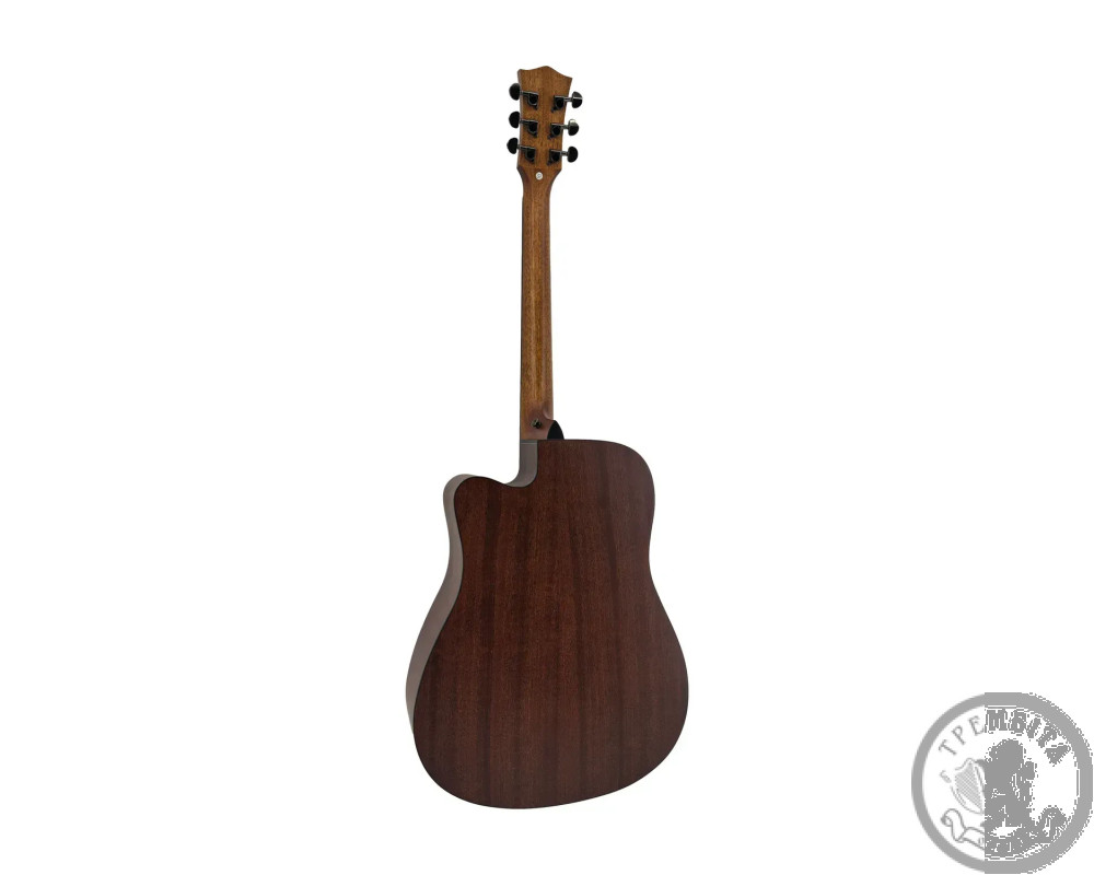 Корпус гітари виконаний за класичною схемою: верхня дека з масиву смереки забезпечує яскраву атаку і чітку артикуляцію кожної ноти. Задня дека і боковини з ламінату червоного дерева додають теплоти в середніх частотах і створюють збалансоване звучання. Накладка грифа з палісандра не тільки надає інструменту шляхетного вигляду, а й забезпечує плавне ковзання пальців по ладах. Матове покриття захищає деревину від пошкоджень і підкреслює природну текстуру дерева.