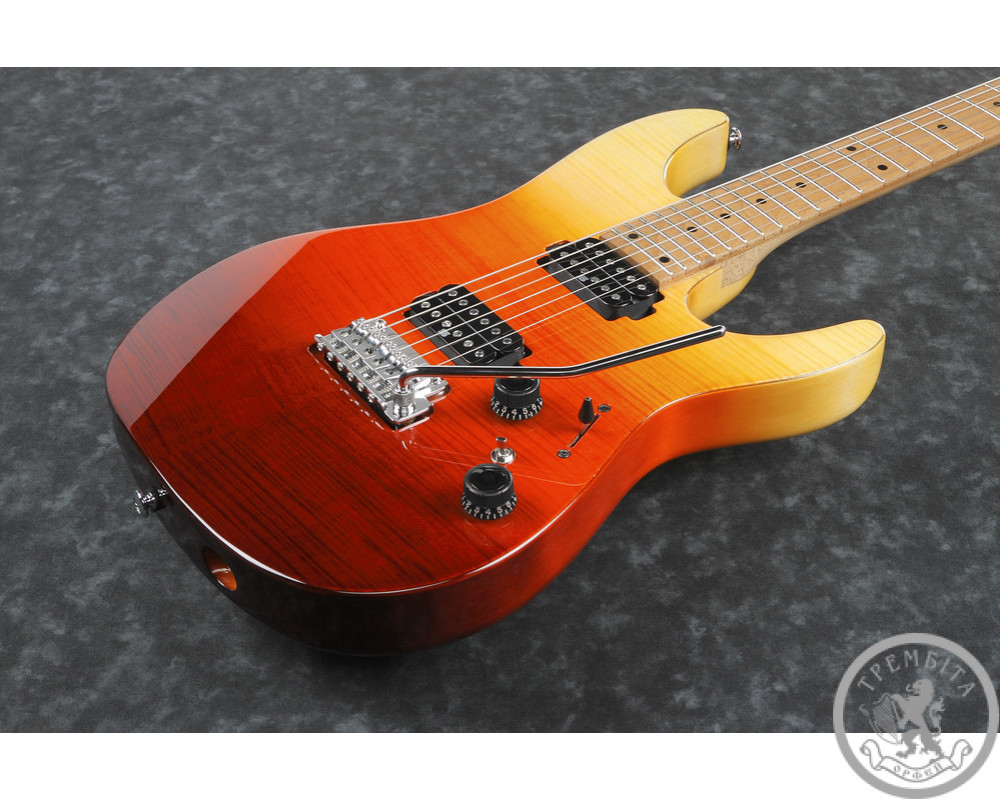 Электрогитара новой серии AZ, дека - американская липа / волнистый клен, гриф - клен (термически укреплен), люминесцентная маркировки боковых точек на грифе, бридж - Gotoh T1502, звукосниматели - Seymour Duncan® Hyperion, 10 вариантов тона, локов колья Gotoh® Magnum, кейс, цвет - текила санрайз