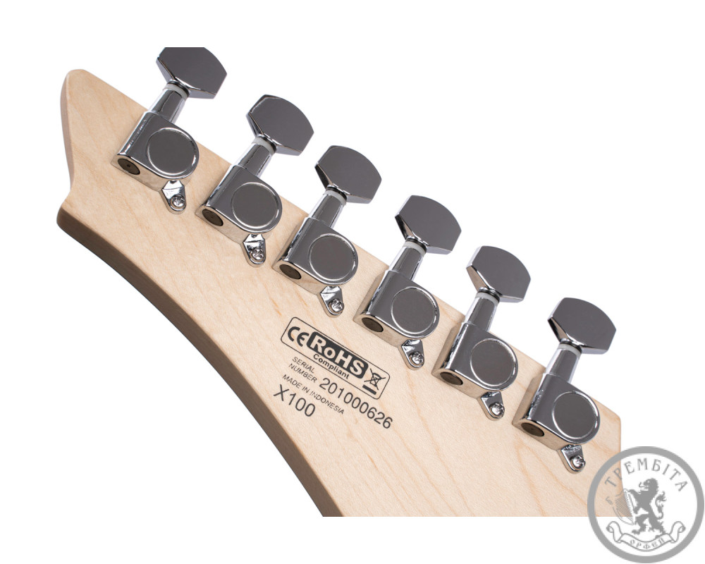 Младшая модель в семействе X Series, X-100 отличается тем же невероятно удобным и эргономичным дизайном, оставаясь при этом доступной даже для начинающих музыкантов. Хищный корпус из древесины меранти со скоростным грифом из отборного клена дополняется двумя мощными хамбакерами Powersound и традиционным тремоло типа Vintage.