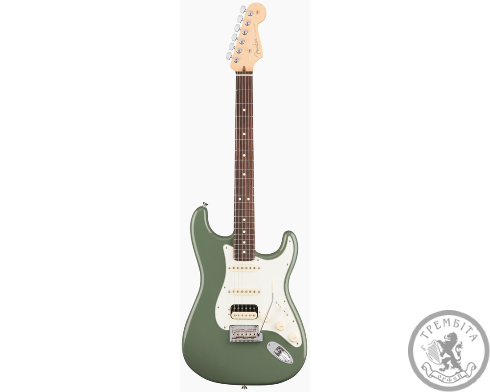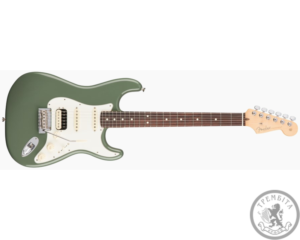 КРАТКОЕ ОПИСАНИЕ : Электрогитара новой серии American Professional, стратокастер, дека - ольха, гриф - клен / палисандр, звукосниматели - Shawbucker / V-Mod Strat Pickups, цвет - оливковый, кейс