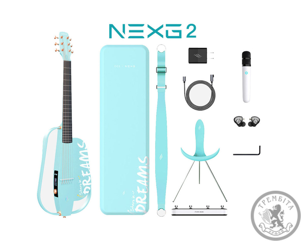 Комплектація: Гітара, чохол, підставка для заряджання, бездротова педаль, ремінець, кабель для заряджання, ручний бездротовий мікрофон, навушники.