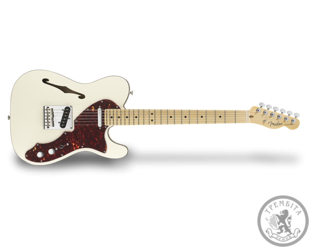 Електрогітара MODERN THINLINE TELE OWT від легендарної компанії FENDER, як і всі її сестри, виготовлена з найкращою деревини: ясеня (дека) і клена (гриф). Має фіксований бридж (кріплення струн крізь деку), 2 сингли SS і 22 лади Medium Jumbo. Білий колір інструменту і незвичайна накладка на гриф без перебільшень надають йому величний вигляд. Дана електрогітара нагадує гітари 90-х років минулого століття, але вона може похвалитися сучасним обладнанням.