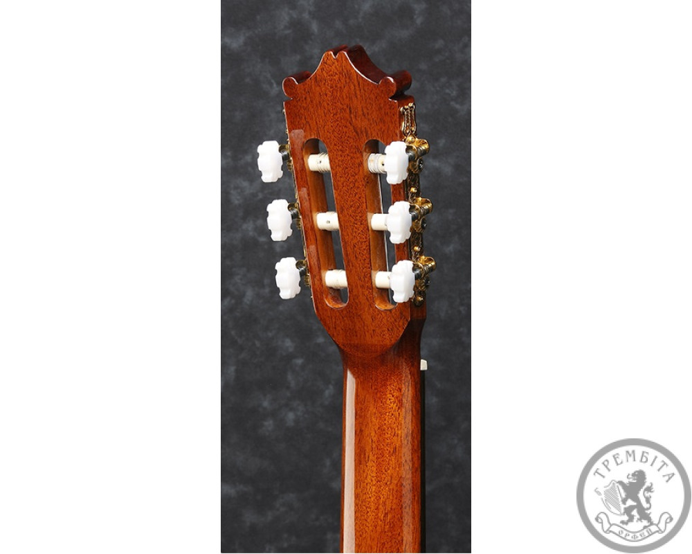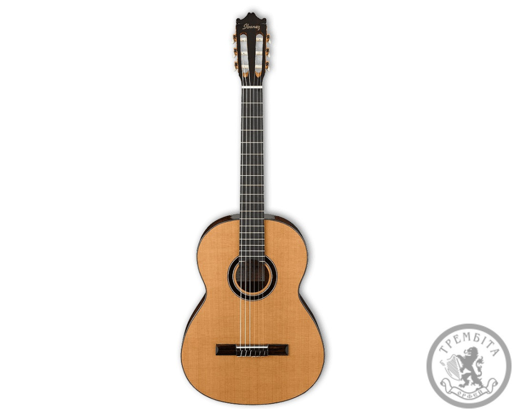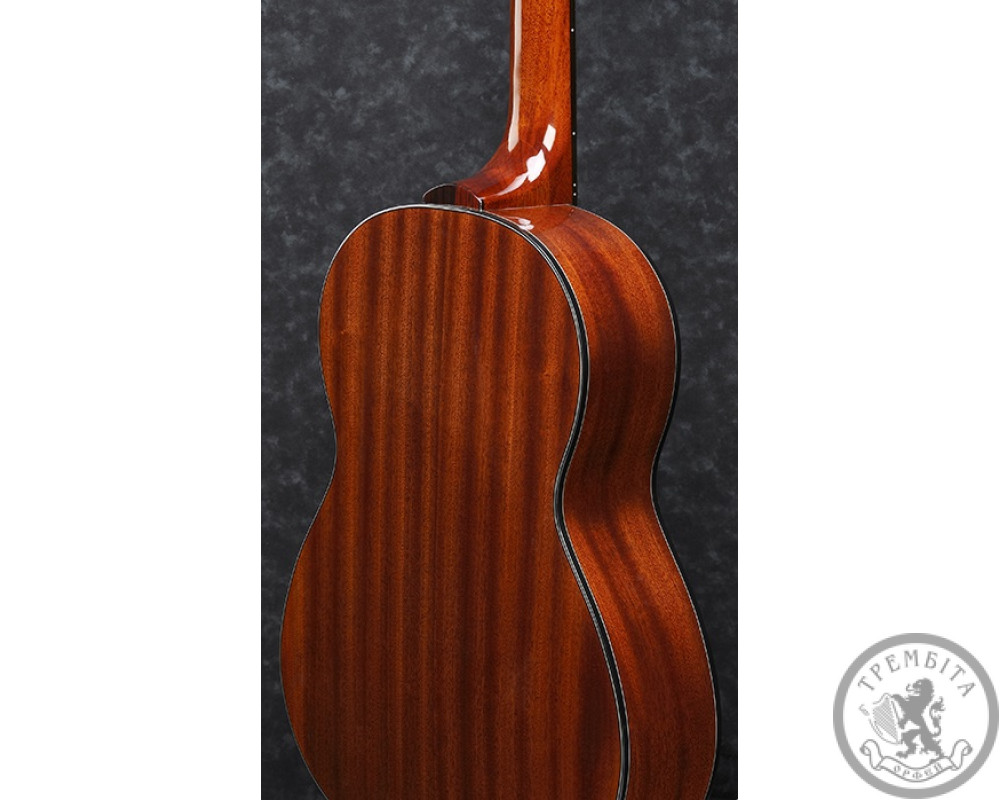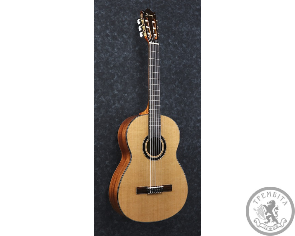 ПОВНИЙ ОПИС: Ibanez GA15 NT відноситься до розряду класичних повнорозмірних акустичних гітар. Це інструмент початкового професійного рівня за бюджетною ціною. Прекрасно підійде для навчання класу гри на гітарі в музичних школах та училищах, а також для домашніх репетицій і невеликих виступів. Гітара має теплим яскравим звучанням, завдяки нижній деці, обечайке і грифу з червоного дерева. Верхня дека виконана з ламінованого кедра, за рахунок чого виглядає і звучить трохи більше цікавіше, ніж класичний ялиновий топ. Палісандрова накладка грифа містить 19 стандартних ладів без маркерів. Палісандрове струнотримач стильно гармонує за кольором з оформленням розетки, а білі наскрізні кілки 3 + 3 вдало поєднуються з верхнім і нижнім порожком. Гітара має лакове поліуретанове покриття середнього ступеня глянцю 70Gloss. Таке покриття володіє підвищеною стійкістю до стирання, захищає деревину від атмосферних впливів і надає інструменту ефектний зовнішній вигляд.