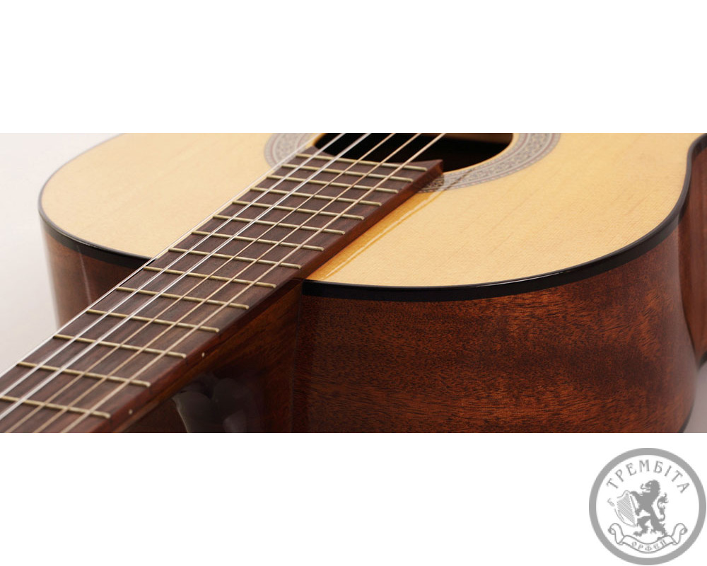 Верхня дека гітари AC100 виготовлена з ялини, завдяки чому має резонансний звучання, яке дійсно покращується з роками.