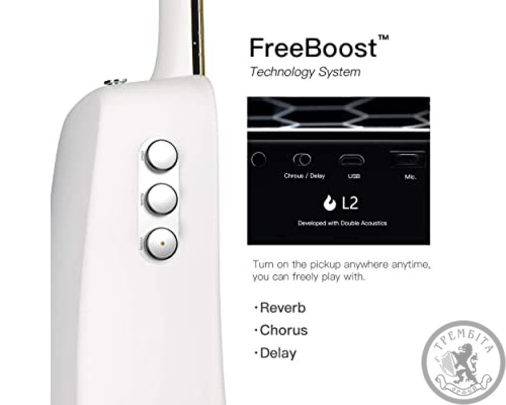 У гітарі інтегровано новітню розробку - преамп L2. Він збагачує та підсилює перкусійні властивості гітари незалежно від того чи ви підключені чи ні. У вашому розпорядженні доступні такі ефекти як: Chorus, reverb, delay.
