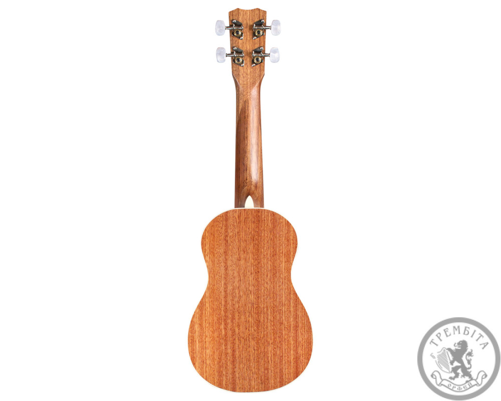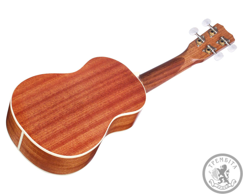 Корпус ручної роботи та накладка грифу захищені окантовкою зі штучної слонової кістки, а резонаторний отвір прикрашений натуральним абалоне. Фірмові кілки з акриловими перламутровими ручками дозволяють швидко та точно налаштувати інструмент та надійно тримають лад. Ця модель безумовно прийдеться до смаку не лише новачкам, але й досвідченим професійним музикантам.