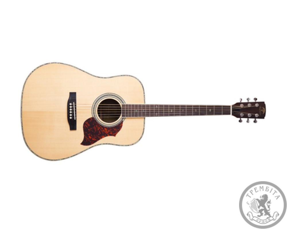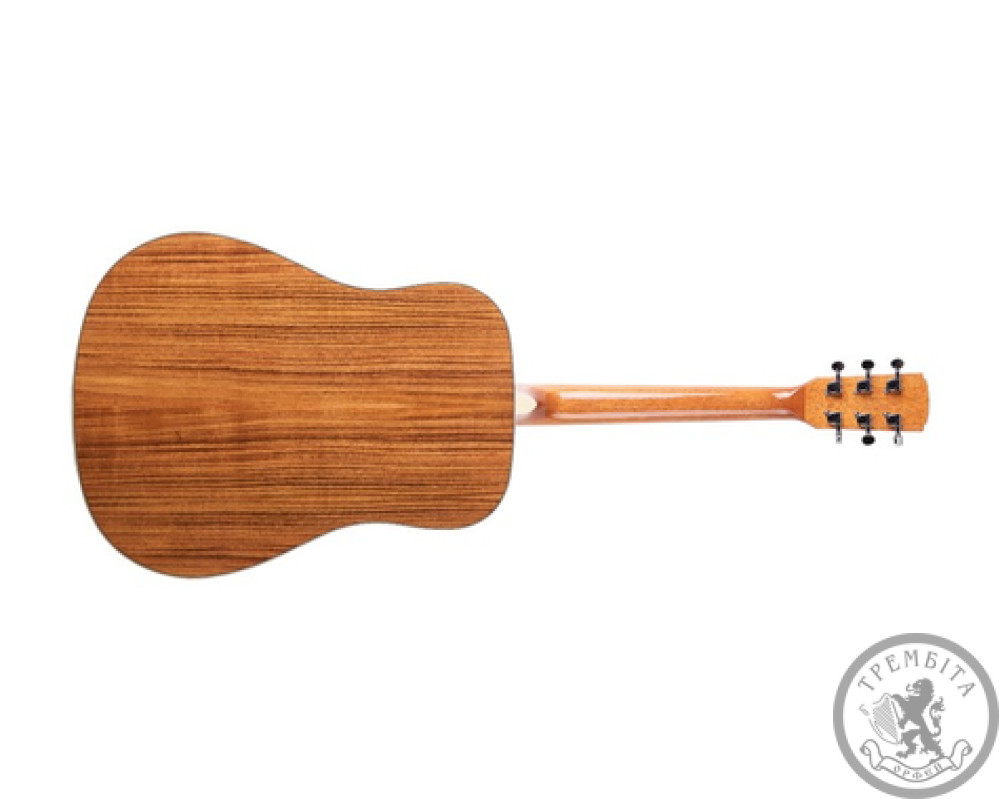 Virginia VD210S - 6-ти струнная акустическая гитара с формой корпуса дредноут, поэтому ей присуще громкое, открытое звучание. Инструмент идеально подойдет как для начинающих, так и для гитаристов со стажем, ведь она сочетает качественные материалы, превосходное звучание, привлекательный внешний вид и приятную цену. Верхняя дека изготавливается из массива ели. Благодаря этому, Virginia VD210S имеет теплое звучание с широким динамическим диапазоном. Гитара имеет яркий характер звука с выраженной серединой, а также хороший сустейн. Корпус изготавливается из экзотического дерева коа, которое растет только на гавайских островах. Эта древесина имеет не только привлекательный внешний вид, она расширяет динамический диапазон инструмента, придает звучанию глубины. Акустическая гитара VD210S великолепно звучит для игры ритмических партий аккордами, ведь сочетание деревьев ели и КоА создают идеальные условия для читабельного звучание в миксе, а особенно для игры аккомпанемента вокала. Гриф изготавливается из нато, что увеличивает сустейн гитары. Длина мензуры 650 мм. Голова грифа оборудована высококачественной колковый механикой Der Jung с комфортными ручками. Эти колки надежно держат строй, что является важным для живых выступлений или записи. Накладка грифа и бридж изготавливаются из палисандра. Порожки изготовлены из кости, что характерно для высококачественных, дорогих гитар, ведь они идеально передают резонанс на топ гитары. Эти порожки установлены с компенсацией мензуры, поэтому на каждом строя ноты звучат чисто. Акустическая гитара Virginia VD210S покрыта глянцевым лаком, имеет роскошную инкрустрацию окантовки и точек на ладах и розетку Green Abalone. Эта гитара прекрасно подойдет для игры в коллективе и живых выступлений, ведь сохраняет все стандарты профессиональной акустической гитары.