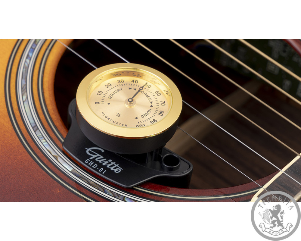 Guitto GHD-01 - це сучасний зволожувач, який розроблено спеціально для акустичних та класичних гітар. Він якісно зволожує вашу гітару та запобігає висоханню дерева чи його розстріскуванню. Крім того, зволожувач Guitto має вологомір з індикаторною стрілкою, яка показує вологість в реальному часі.