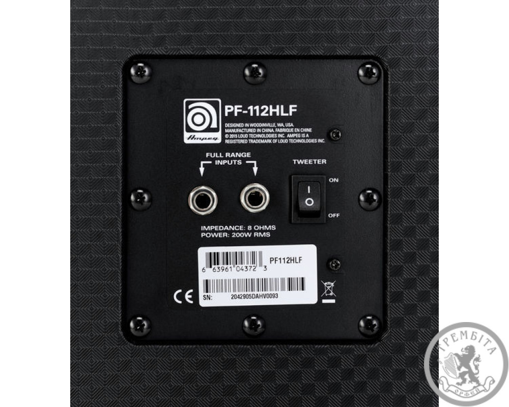 Ampeg PF-112HLF относится к одной из самых популярных серий винтажных кабинетов, которые являются частым выбором профессиональных исполнителей. Модель сочетает в себе винтажное теплое звучание и мощность современных усилителей. Несмотря на скромные габариты этот «малыш» способен порадовать владельца мощностью в 200 Ватт, которая достигается за счет громкого двенадцатидюймовый динамика Eminence Custom, который вполне оправданно считается одним из оптимальных решений для использования в бас-гитарных кабинетах. Плотные низкие частоты с прекрасным динамическим диапазоном - заслуга именно этого громкоговорителя.