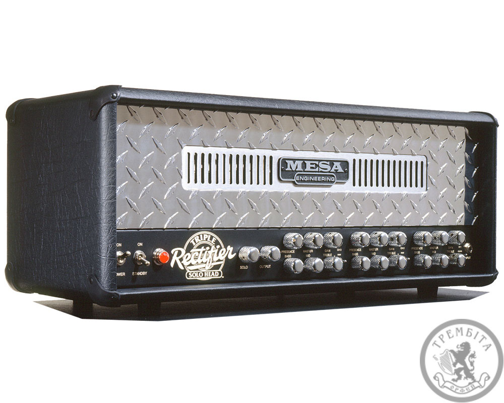 Mesa Boogie Triple Rectifier - это 150 Вт полностью ламповый одноканальный гитарный усилитель. Патентованные разработки Mesa Boogie обеспечивают большую универсальность звучания. Три канала с полностью независимой регулировкой имеют в совокупности 8 различных режимов работы. Секция мощности допускает переключение тока смещения и замена ламп 6L6 на British EL34, понижение выходного напряжения для preload имеет два типа выпрямления питания: "быстрое" транзисторное и компрессирующее ламповое. Режим допускает как "классический" звук, так и агрессивный современный metal саунд. Регулируемый подъем уровня в режиме Solo, активируется с помощью ножного переключателя. Параллельный цикл эффектов гибко назначается на каналы. Релейные входы обеспечивают интеграцию с профессиональными электронными системами управления и коммутации стека до лампового усилителя.