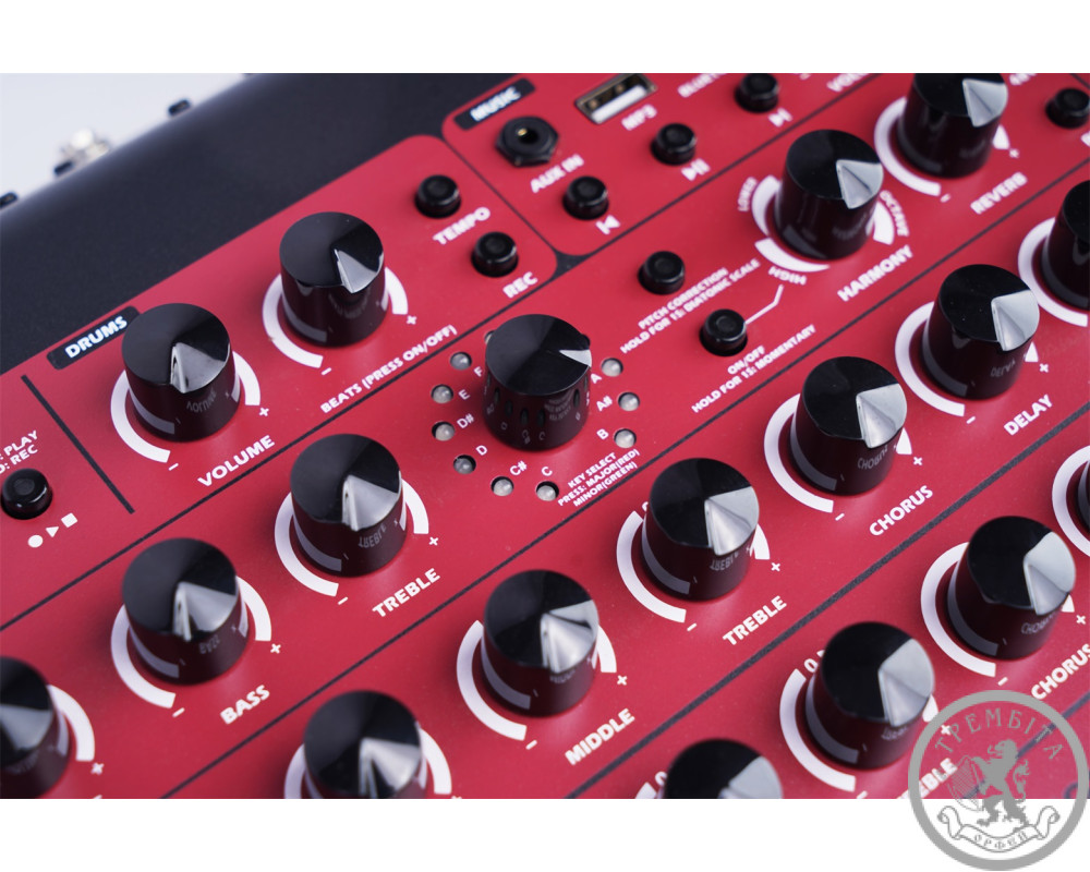 - Драм машина з 20-ма вбудованими барабанними патернами та функцією Tap Tempo;