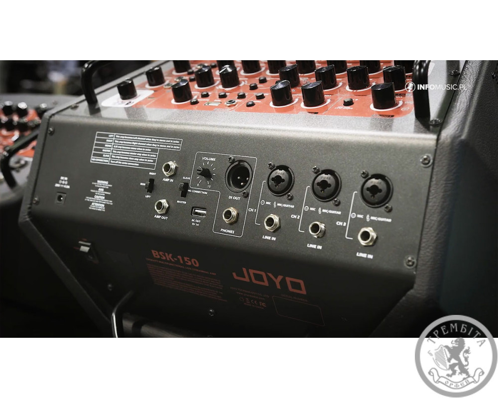 Joyo BSK-150 - багатофункціональний комбопідсилювач для виступів в приміщеннях, на вулиці або прямих трансляцій аудіо. Підтримує одночасне під'єднання мікрофона та двох інструментів.