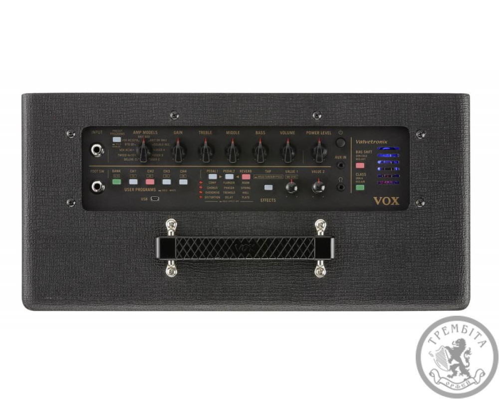 VOX VT20X - это гитарный комбоусилитель мощностью 20 Вт, который в корне меняет представление о гибридных усилители. Все модели этой серии оснащены уникальной виртуальной системой VET (Virtual Element Technology), которая анализирует и воспроизводит все компоненты и элементы цепи гитарного усиления звука, благодаря чему на выходе получается точно и реалистичные звучание встроенных пресетов гитарных усилителей. Кроме того, усилители этой серии оборудовании многоступенчатыми ламповыми предусилителями Valvetronix, работающих на вакуумных лампах 12AX7. Эти преампы гарантируют полностью аналоговое звучание, учитывая все нюансы и динамику ламповой звукопередачи. Кроме того, Valvetronix имеет несколько режимов работы: переключение класса усиления из А в А / В, а также переключение режимов Cold и Hot, которые в соответствии усиливают чувствительность и перегрузки. В добавок, комбоусилители серии VTX должны плотно закрыты басовидбиваючи кабинеты, которые предоставляют бескомпромиссный тон и резонанс. Имея входной разъем USB, для этой линейки усилителей доступно специальное программное обеспечение Tone Room, которое позволяет полностью кастомизировать ваши пресеты и эффекты, добиваясь собственного, неповторимого звучания.