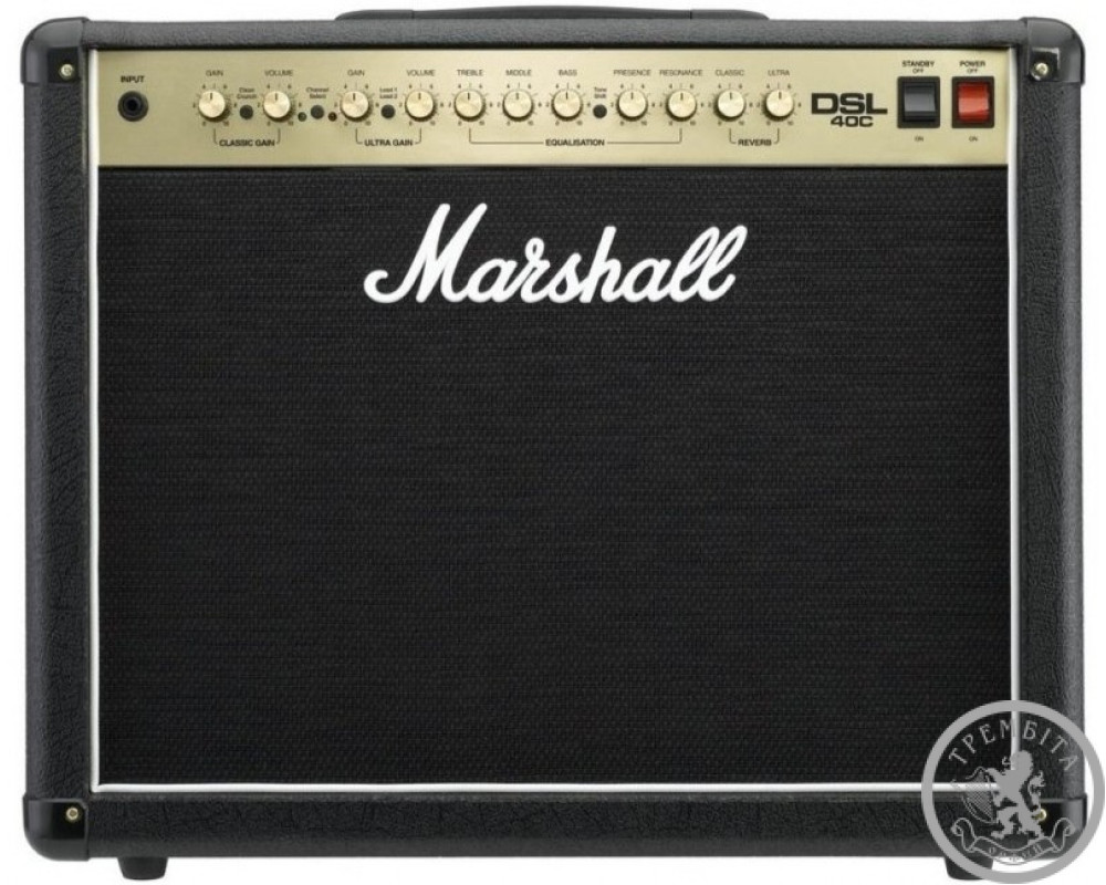 Компания MARSHALL представила новый комбо MARSHALL DSL40C. Простой и полностью ламповый комбоусилитель для электрогитары MARSHALL DSL40C укомплектован одним 12 '' динамиком Celestion. Передняя и задняя панели имеют точно такие же органы управления и разъемы, и старший гитарный комбоусилитель серии DSL MARSHALL DSL100H. Ламповый комбоусилитель MARSHALL DSL40C имеет 2 канала Classic Gain и Ultra Gain с их возможностью переключать ногой. Каждый из каналов имеет по 2 режима работы для более гибкой настройки звучания усилителя. Оба канала имеют общий эквалайзер с регуляторами Treble, Middle, Bass, Presence и Resonance.