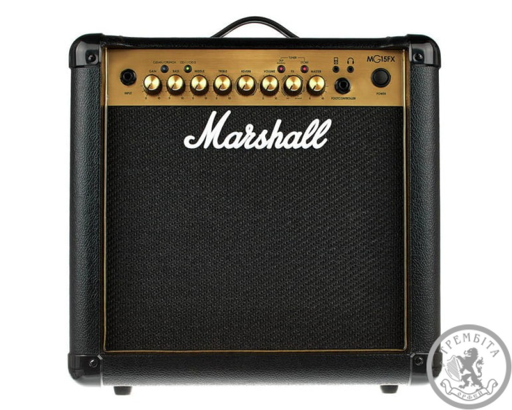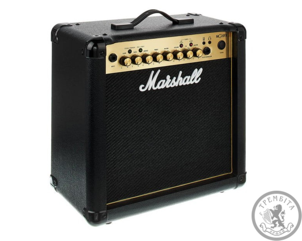 Комбопідсилювач MARSHALL MG15GFX має знаковий дизайн передньої частини із золотою панеллю і забезпечує 15 Вт портативного тону Marshall з додатковими звуковими ефектами та реверберацією, з 8" потужним динаміком у компактних розмірах. Підсилювач оснащений 4 каналами, що дозволяє перемикатися між чистими й кранч звуками, каналом овердрайв, доступним як в «зеленому», так і в «червоному» режимах. FX дозволяє вибрати один з 5 різних цифрових ефектів. Підсилювач досить універсальний, що дозволяє відтворювати вам всі стилі, від чистої попмузики до важкого року і металу.