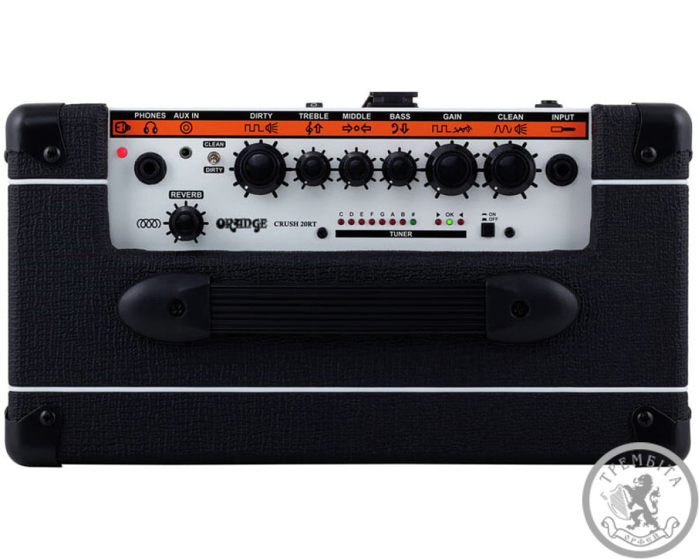 Crush 20RT оборудован полностью новым цифровым модулем, основанным на классической пружинной реверберации. Он добавит звучанию теплоту и объём от тончайшего мерцания до длинных потусторонних завихрений. Блок реверберации сделан по схеме Analog-Dry-Through, что гарантирует целостность и неизменность вашего оригинального звучания независимо от уровня эффекта. А встроенный хроматический тюнер поможет Вам быстро и точно подстроить гитару.