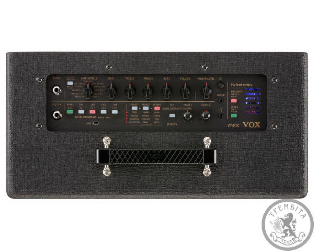 Vox VT40X гитарный комбо сочетает в себе продвинутую цифровую технологию и уникальную аналоговую схему, позволяющую создать аутентичное ламповое звучание. При создании инженеры VOX проанализировали реальные модели усилителей, их компоненты и схемы, так что каждая из 11 представленных на выбор моделей звучит невероятно реалистично. Ламповый предусилитель Valvetronix с несколькими секциями позволит вам услышать даже самые тонкие детали вашего звукоизвлечения. Также в вашем распоряжении 13 отличных встроенных эффектов обработки, среди которых вы найдете chorus, flanger, phaser, delay и tremolo. С помощью программы Tone Room вы сможете лично редактировать параметры усилителя и создавать собственные пресеты или с чистого листа, или на основе уже готовых образцов звучания известных музыкантов. Вы можете изменять почти любой параметр, а когда вы создадите свой идеальный звук, вы сможете сохранить пресет, чтобы потом мгновенно переключаться на него и использовать в нужной ситуации. Комбоусилитель для электрогитары Vox VT40X - замечательный комбо и площадка для экспериментов по поиску вашего собственного звучания.