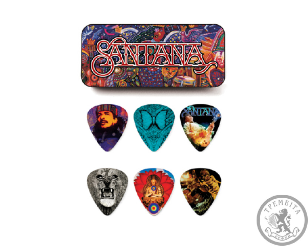 Dunlop с гордостью представляет набор медиаторов Santana Pick Tin. КАЖДЫЙ набор включает в себя шесть медиаторов из графическом оформлении, основанный на обложки от самых популярных альбомов этого знакового музыканта.