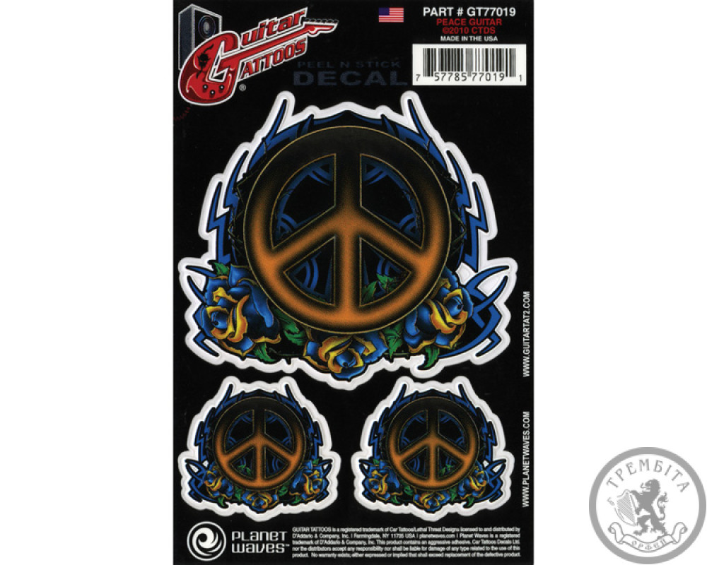 Planet Waves Guitar Tattoo - це найбільш простий спосіб виділити і прикрасити свій інструмент. Тату стікери легко наносяться і видаляються без шкоди для лакофарбового покриття гітари.
