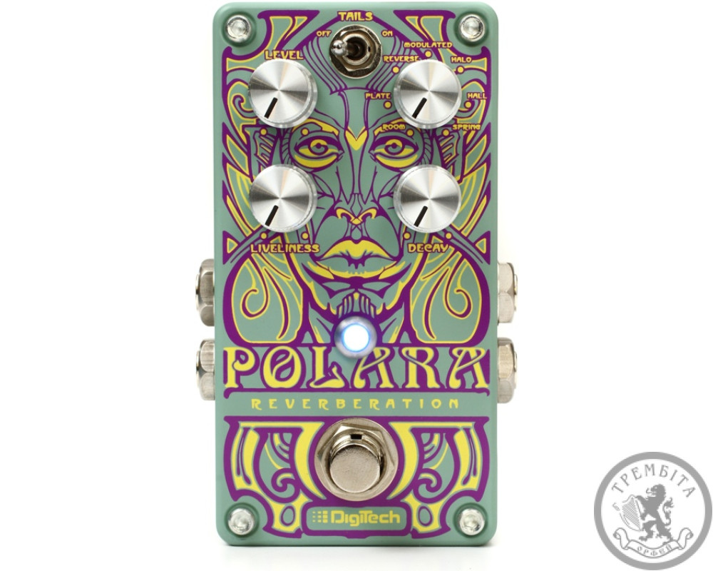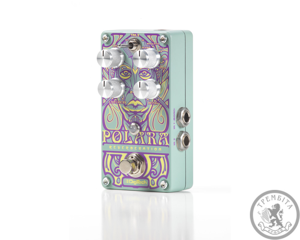 Основні особливості і переваги гітарної педалі DIGITECH POLARA: Професійна конструкція від відомих виробників цифрових ефектів, компанії DIGITECH. Вибір з семи типів ефектів аналогової і цифрової реверберації: ROOM, PLATE, REVERSE, MODULATED, HALO, HALL і SPRING реверб. Оригінальний стиль педалі. Класична і сучасна реверберація включаючи вибір з оригінальних просторових ефектів об'ємного звучання в режимі стерео. Вхідна і вихідна комутація гітари та інших пристроїв в стерео або моно режимах зі стандартними роз'ємами 1/4 Jack. Гумова накладка на педаль і підошву корпусу для стійкої установки на будь-яку поверхню. Для створення ефектів використовувалася аналого-цифрова технологія просторового моделювання, що гарантує високу якість звучання кожного ефекту. Живлення від батарейки типу «крона» або опціонального адаптера електроживлення. Максимально міцний корпус із сталі і яскравий світлодіодний індикатор активності для комфортного використання педалі в самих екстремальних умовах.