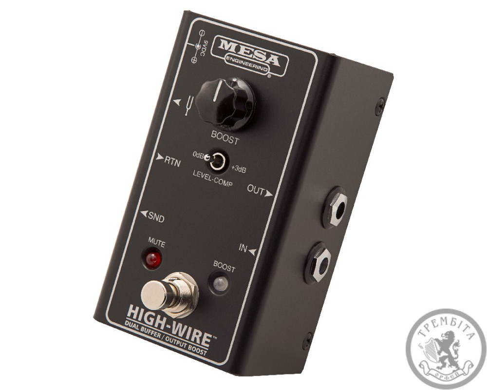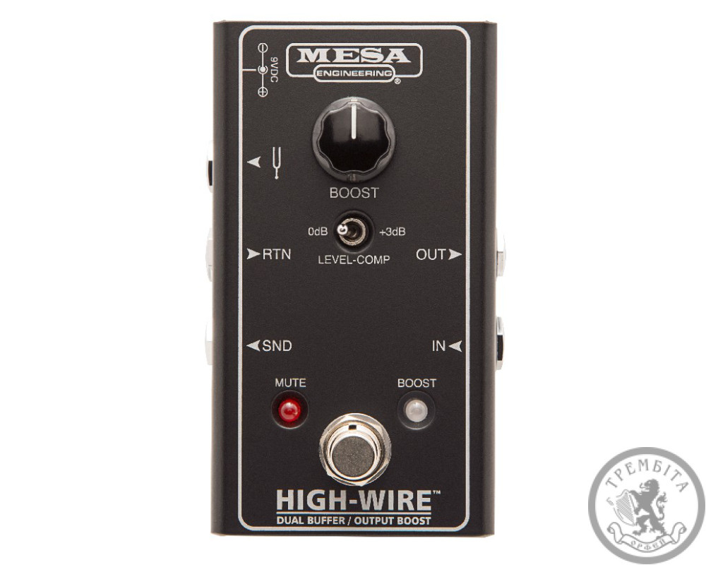 MESA BOOGIE HIGHWIRE DUAL BUFFER & BOOST - два прибора в одном компактном корпусе двойной буфер и линейный драйвер. Это устройство позволяет решить все проблемы согласования как по входу, так и по выходу. Располагаясь между инструментом и педалями, прибор обеспечивает стабильный нагрузки для датчиков гитары, гарантируя тем самым поступление полноценного сигнала на первую педаль в цепи. Если включить данный прибор между педалборд и усилителем, он будет не только буферизацию сигнал, обеспечивая тем самым оптимальные сопротивление и рабочие характеристики, но и позволит получить с помощью встроенного линейного драйвера Footswitchable Boost сигнал более высокого уровня, что немаловажно при использовании длинных кабелей. Как и в случае с прибором Stowaway, буфер выполнен на базе дискретной схемы класса Class-A. HIGH-WIRE также оборудован мини-переключателем + 3dB BOOST, который расположен на верхней панели. Переключатель имеет двойное действие, позволяя активировать функцию BOOST при однократном нажатии, и функцию MUTE при содержании в течение секунды. HIGH-WIRE - универсальное решение, позволяющее избавиться от всех проблем, связанных с потерей качества сигнала при работе с педалборд.